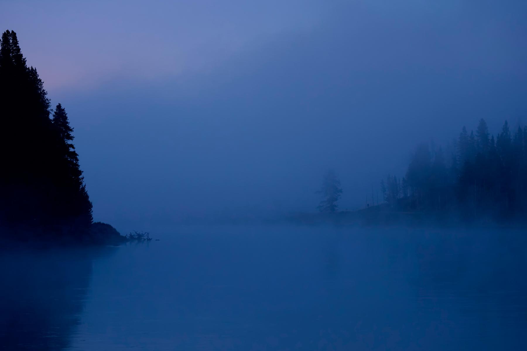During the COVID-19 epidemic of 202 I socially distanced from others by solo camping across Wyoming and Montana. The morning after my birthday I woke much too early, but could not fall back asleep, so I packed up and headed for the Hayden Valley to photograph the herds of mating bison. As I passed Otter Creek I noticed that there was a heavy fog lifting from the river. I parked at one of the riverside fishermen's pull-offs and walked down to the river. I was in the same location until past full sunrise revelling in a beautiful location I had all to myself in a nearly deserted Yellowstone. It was wonderful and eerie at the same time.