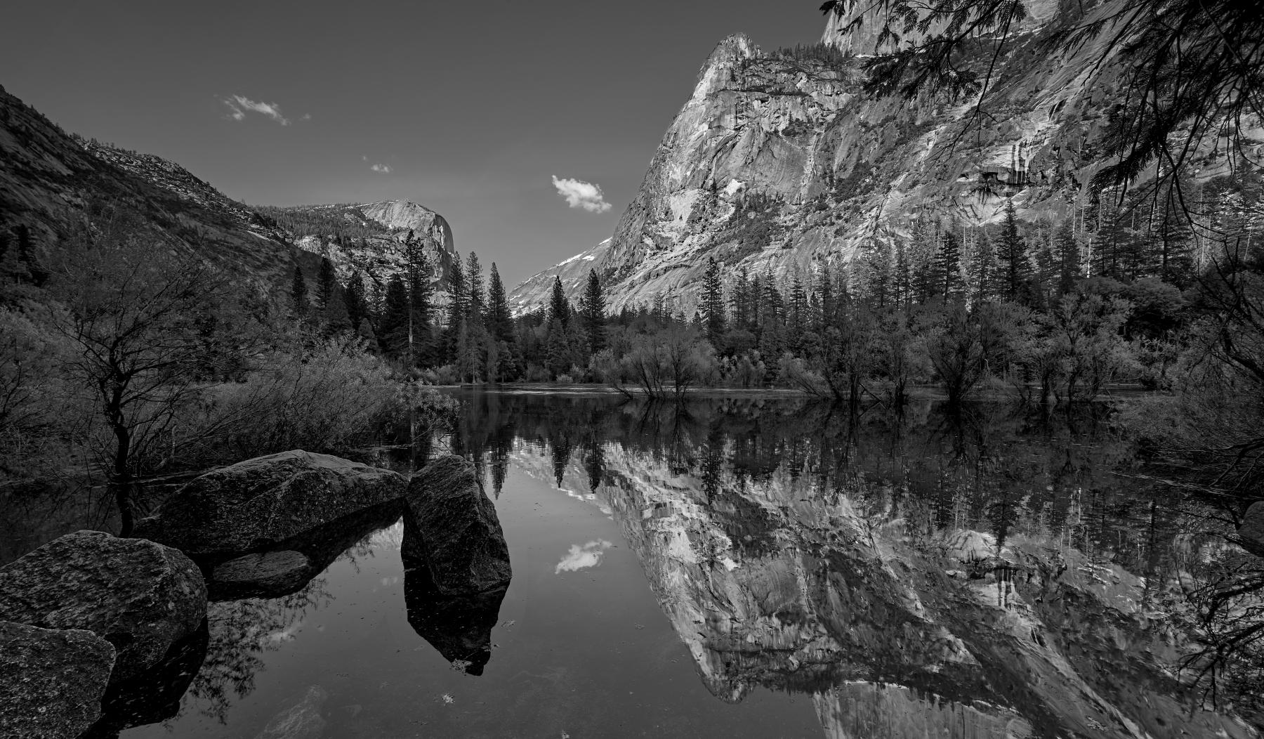 In May of 2023 the famous photo points of Mirror Lake were under water and posted as off limits by the NPS because Tenaya Creek was full from the melting snow and recent rains. These conditions had the advantage of swelling the surface area of Mirror Lake into the bankside trees and created an enormous reflecting pool. Altogether a very special trip to Yosemite!