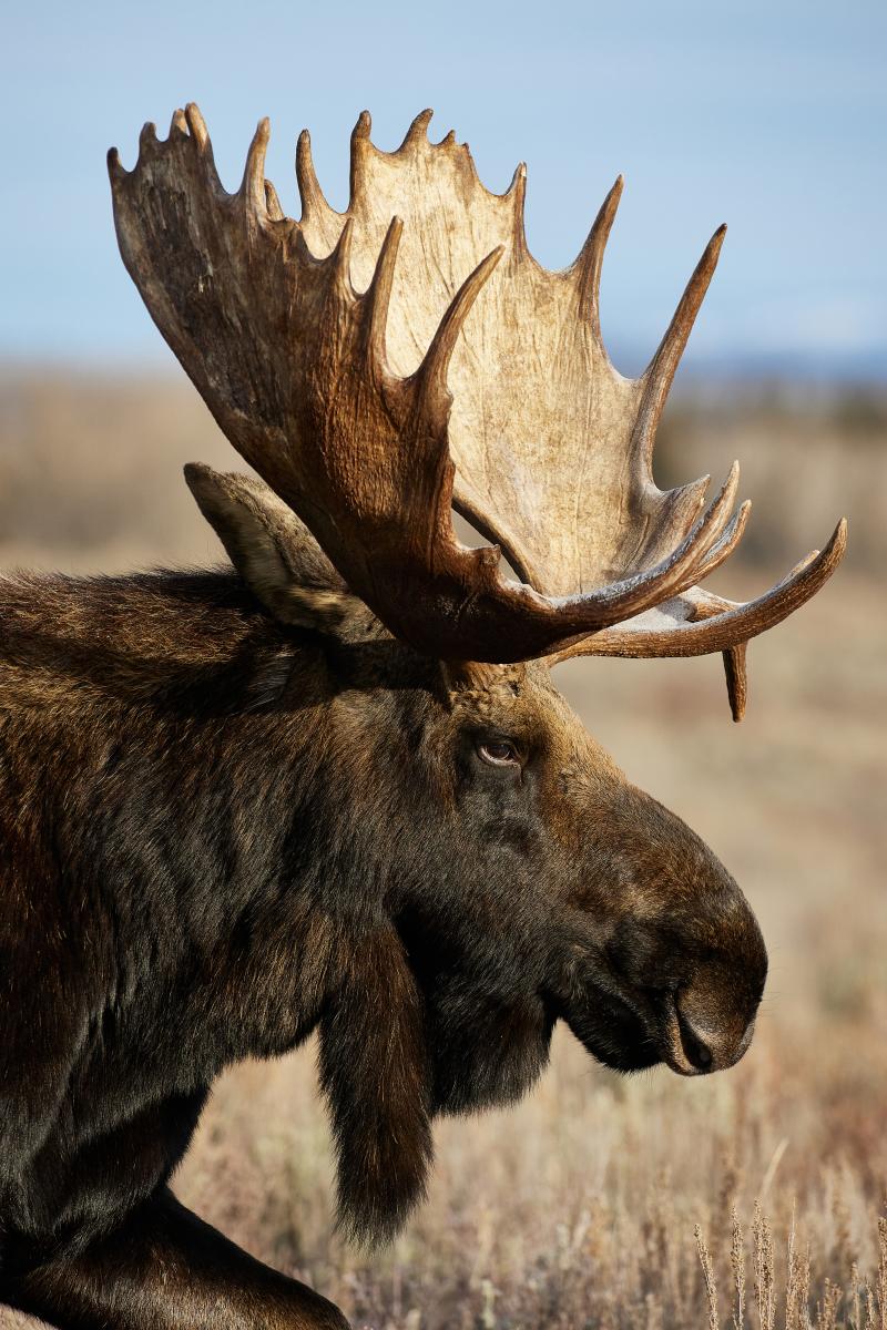 This is Hoback, one of the largest moose in Grand Teton National Park. This photo was made a few years ago and now he is one of the older bulls in the region. He was easily identifiable because of the downward pointing or "drop tine" on his left paddle.